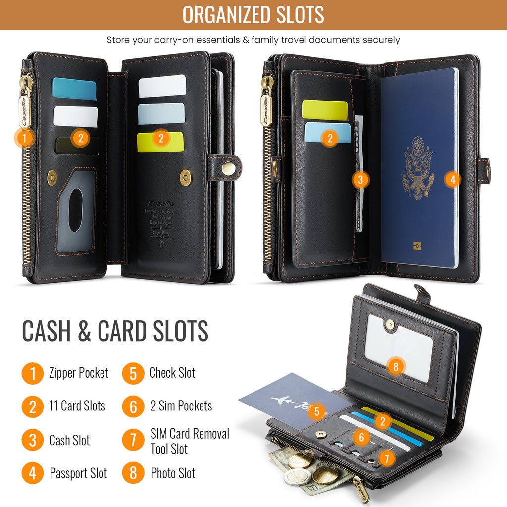 Spacious Design: Holds passport, cards, notes, coins, SIM cards & travel essentials