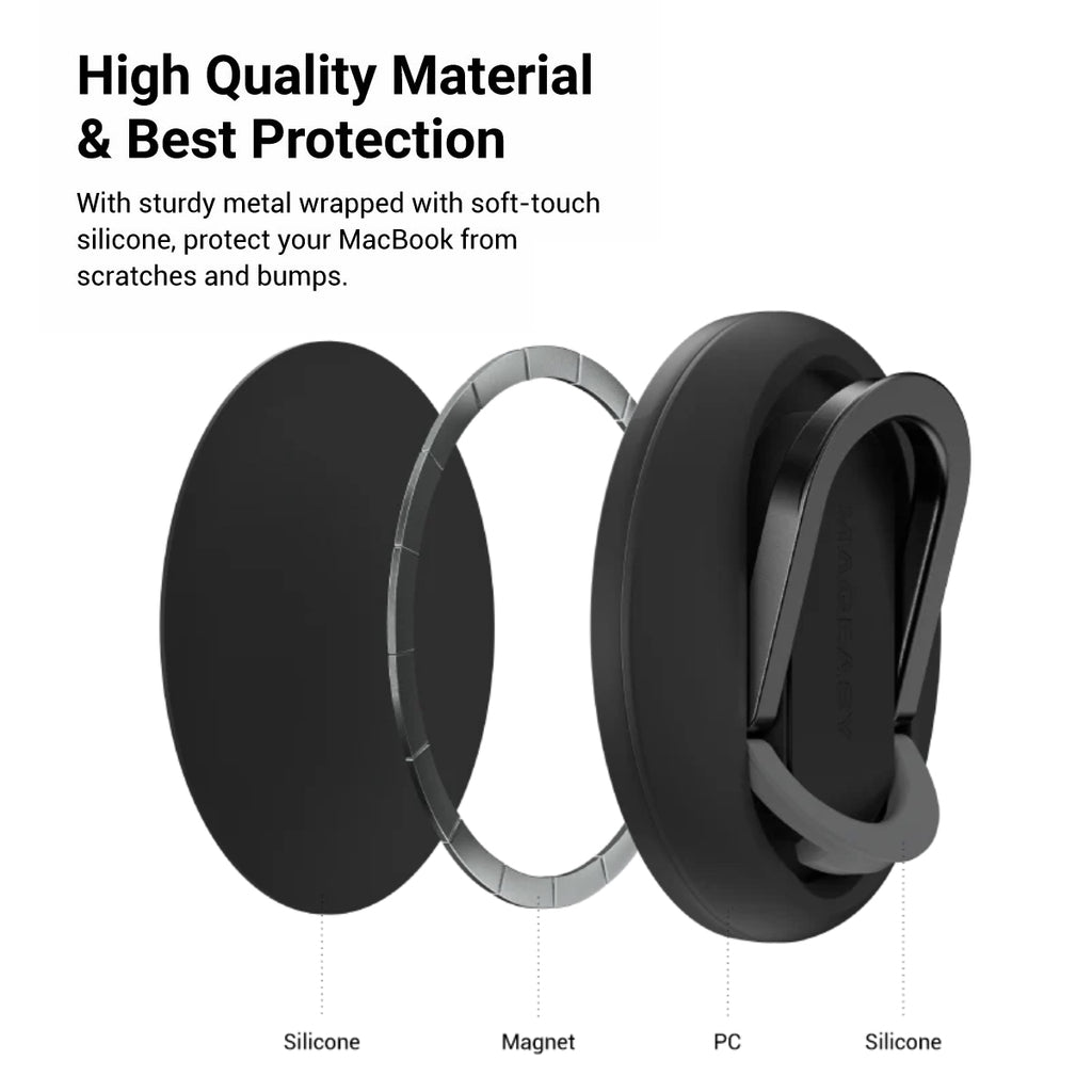 Premium metal structure wrapped with soft silicone protects your MacBook from scratches and damage.