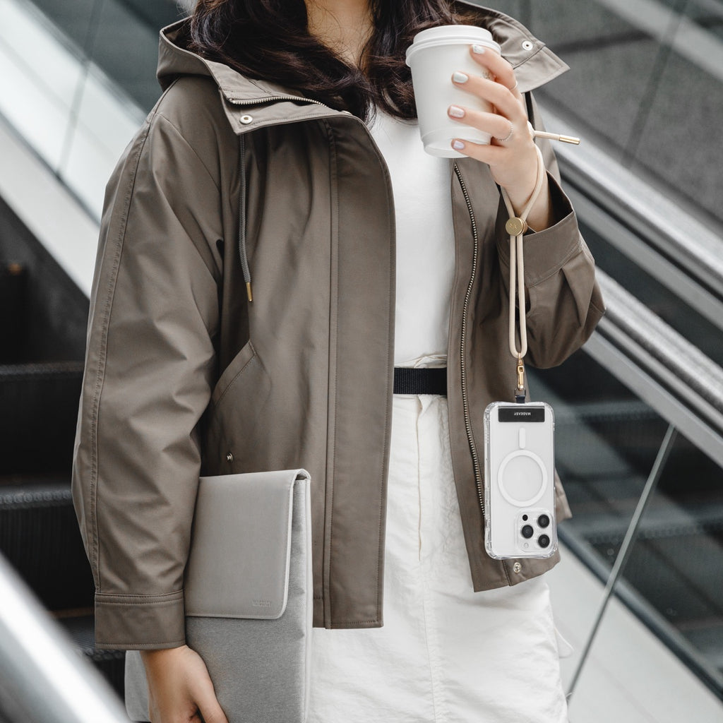 Lightweight and minimal, the wrist strap keeps your phone securely attached without the bulk of a crossbody strap — ideal for quick access and daily use.
