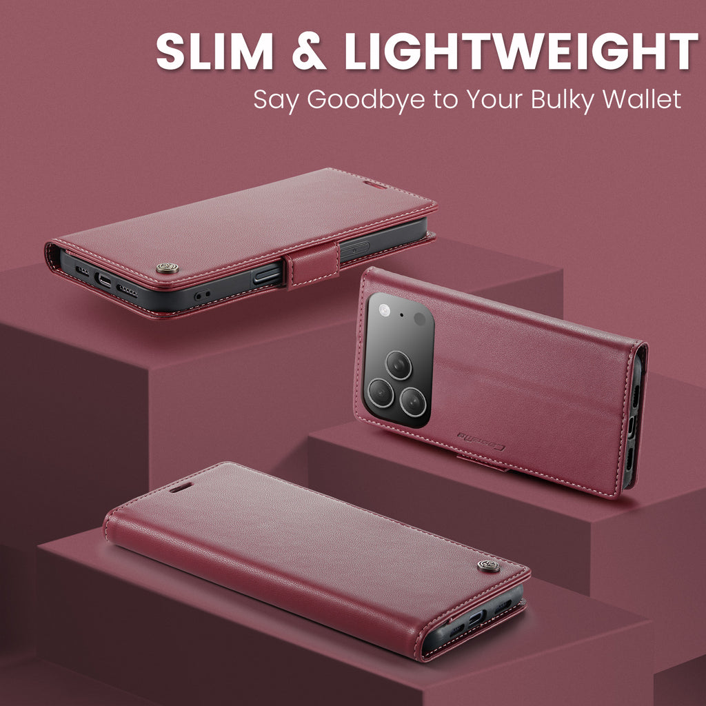 CaseMe Retro PU Leather Wallet Case for iPhone 17 Pro Max – RFID, Card Slots, Stand Function