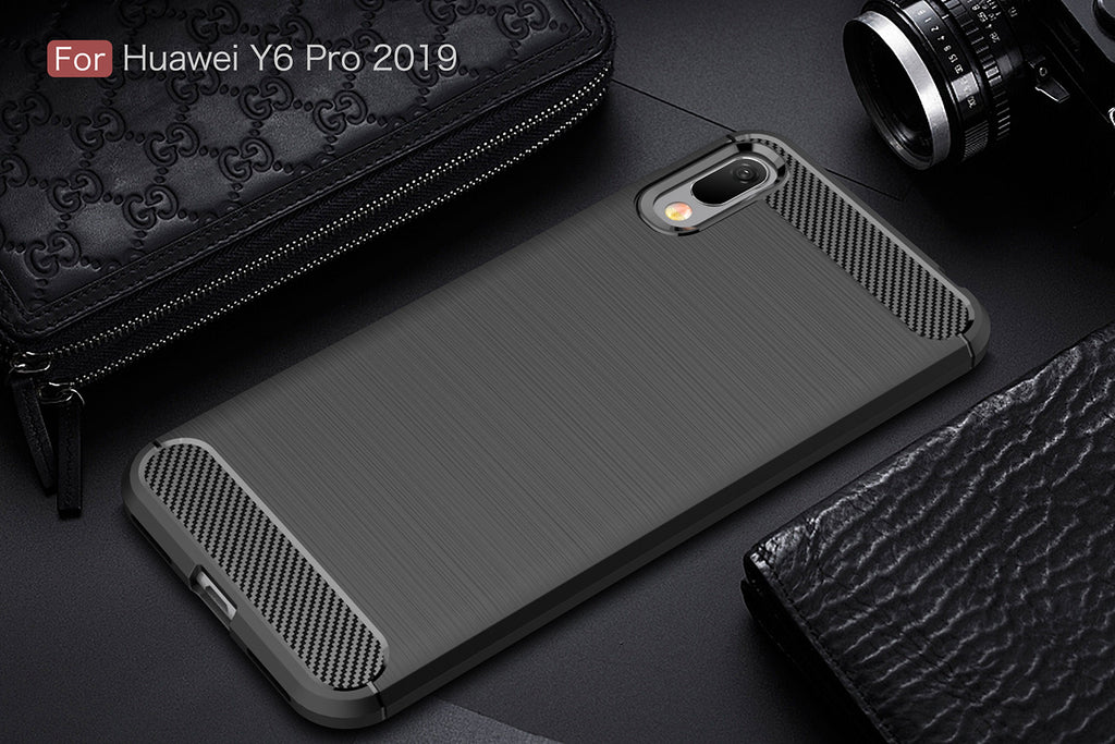 Brand New Carbon Fibre Brushed Texture Soft TPU Huawei Y6 Pro 2019 Case