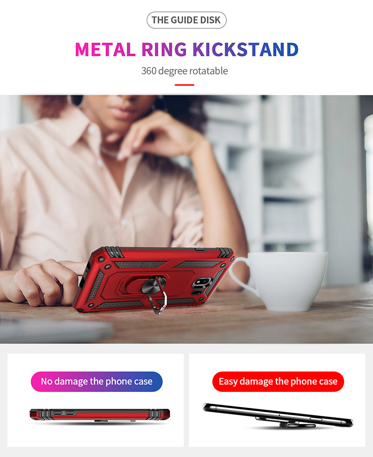 360 degree rotatable aluminum alloy ring kickstand on the Samsung J4 Case allows for the optimal viewing position