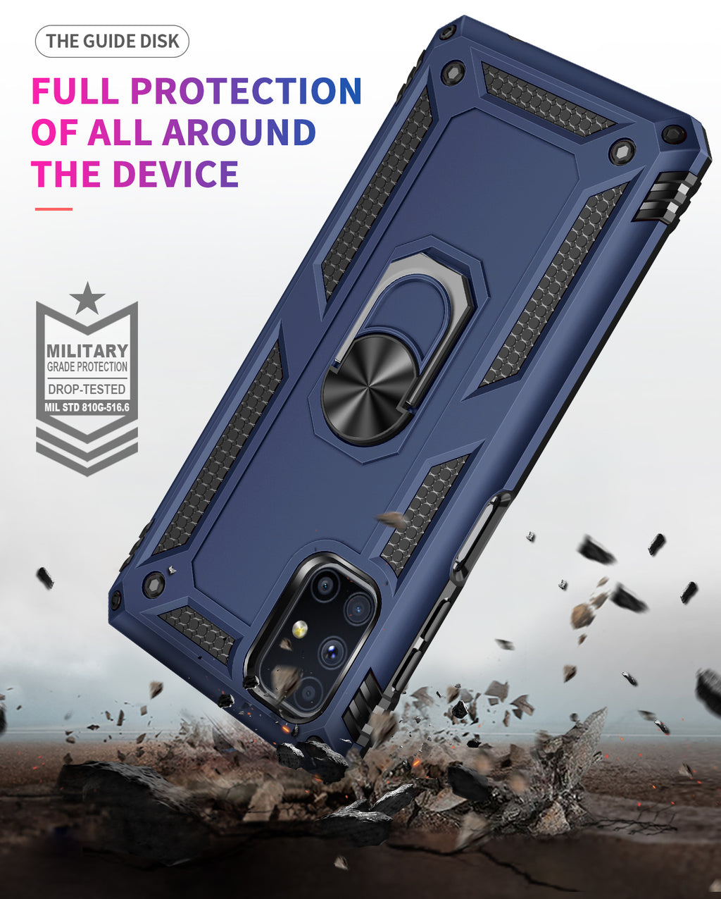 Brand New Premium Quality Heavy Duty Military Armour Kickstand Rugged Samsung M51 Case With 360 Degree Rotatable Ring Grip Holder And Metal Patch