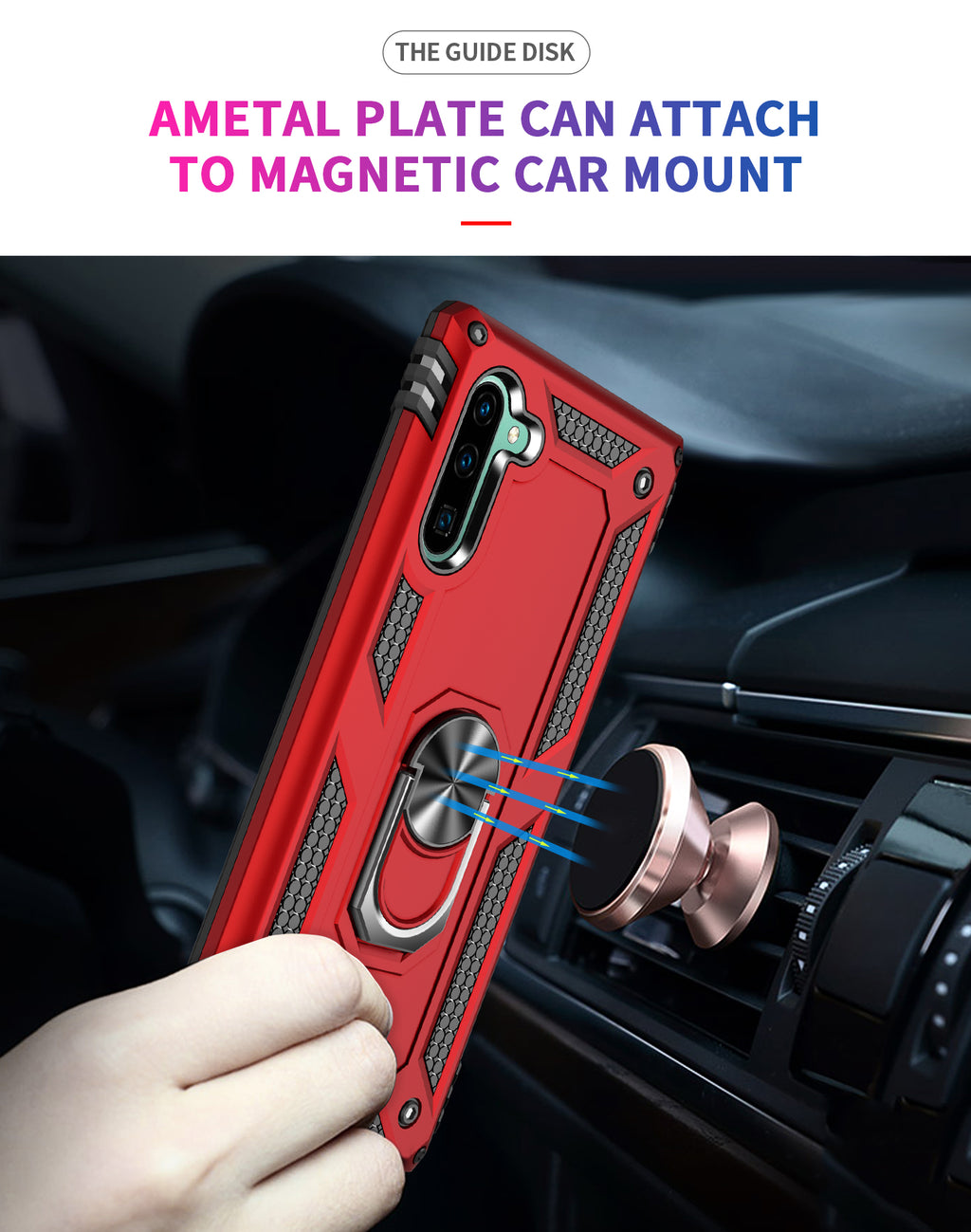 Built-in metal patch on the Samsung Note 10 Case is compatible with magnetic car mount holder