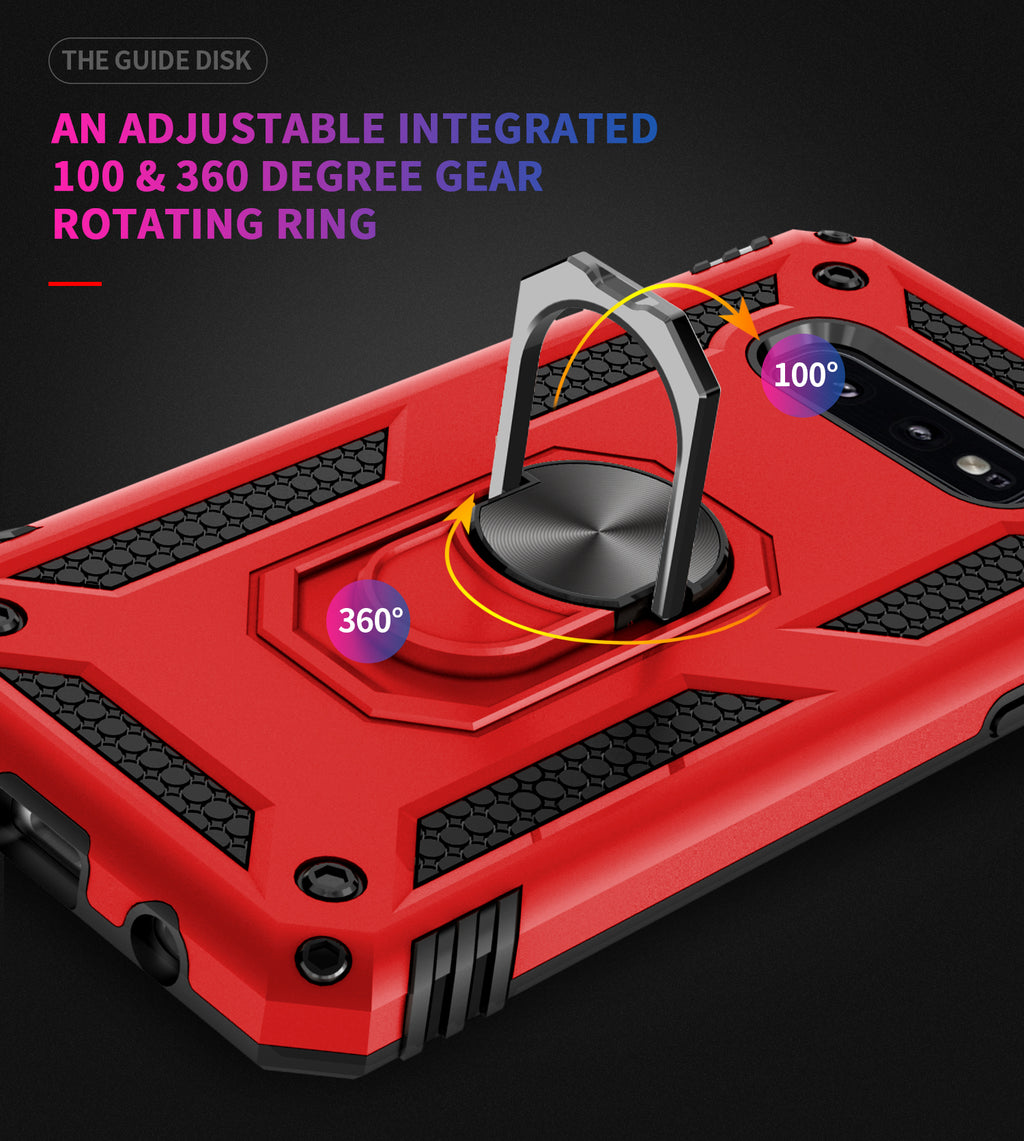360 degree rotatable aluminum alloy ring kickstand on the Samsung S10E Case allows for the optimal viewing position