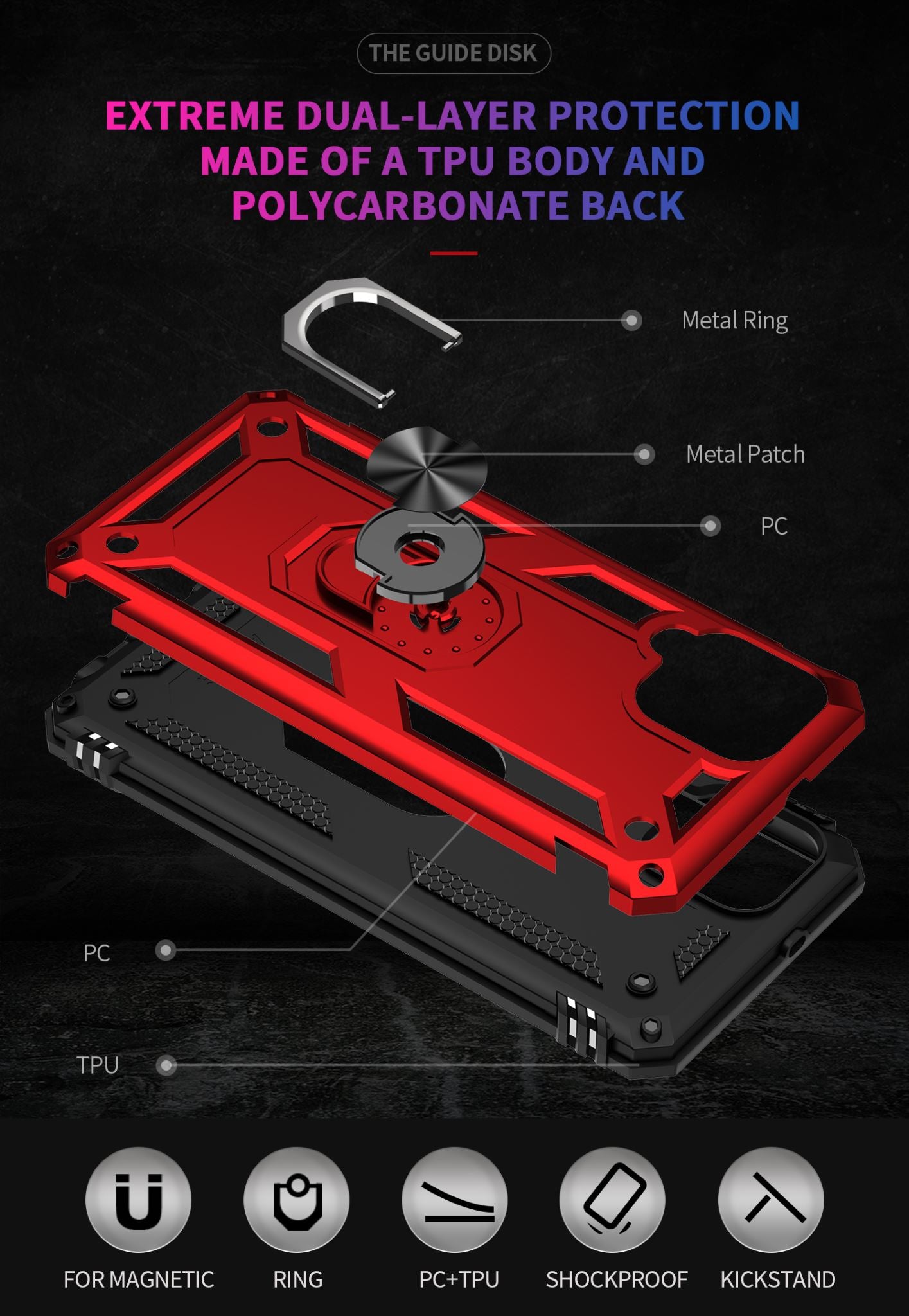 360 degree rotatable aluminum alloy ring kickstand on the Samsung Galaxy A22 Case 4G allows for the optimal viewing position