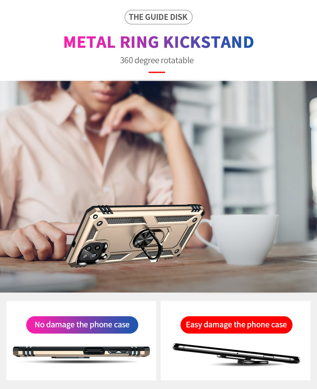 360 degree rotatable aluminum alloy ring kickstand on the Samsung Galaxy A22 Case 4G allows for the optimal viewing position