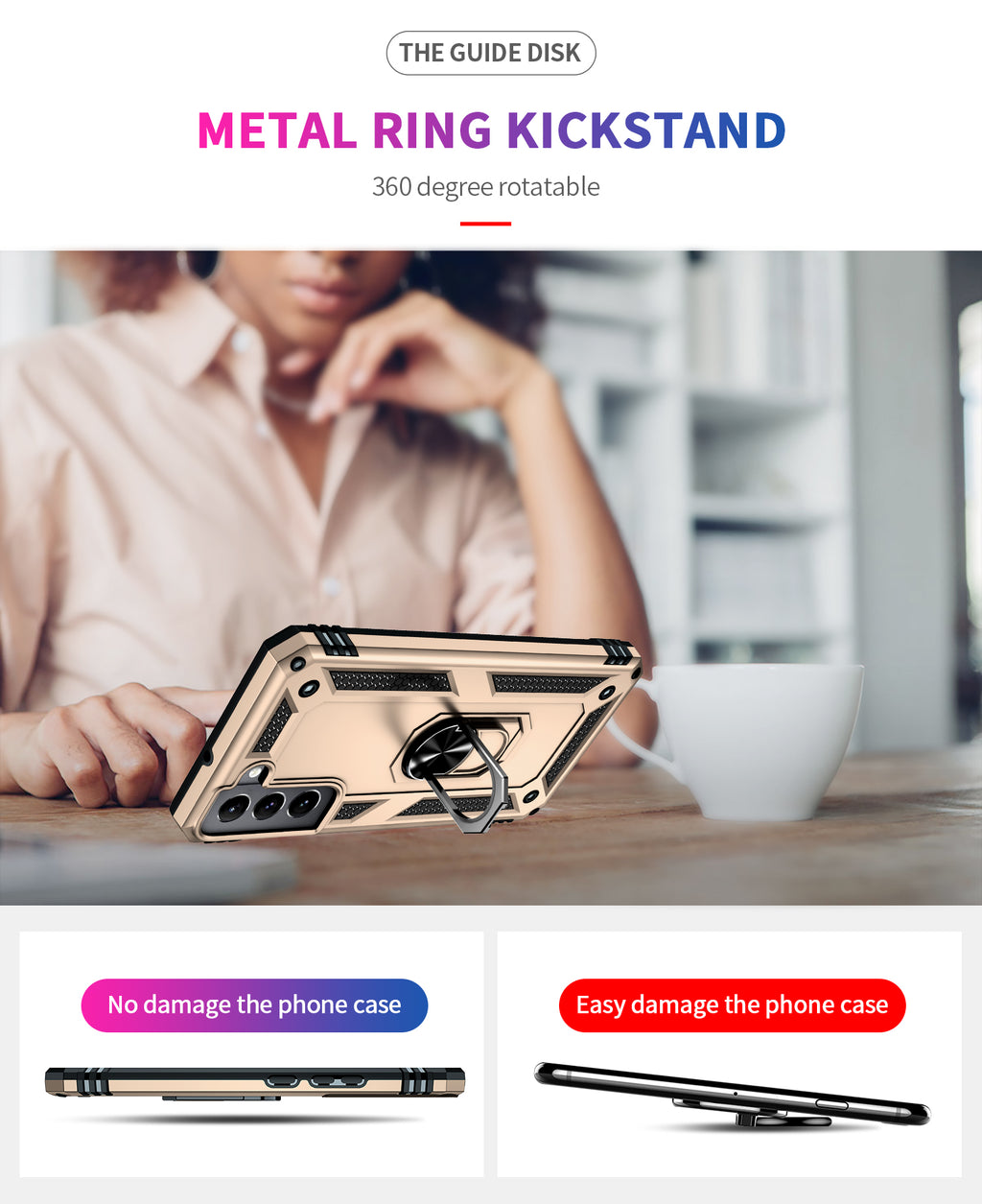 360 degree rotatable aluminum alloy ring kickstand on the Samsung Galaxy S22 Case allows for the optimal viewing position