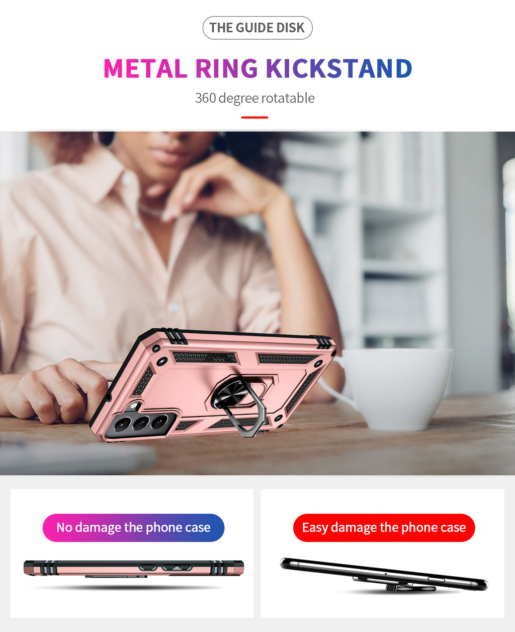 360 degree rotatable aluminum alloy ring kickstand on the Samsung Galaxy S22+ Case allows for the optimal viewing position