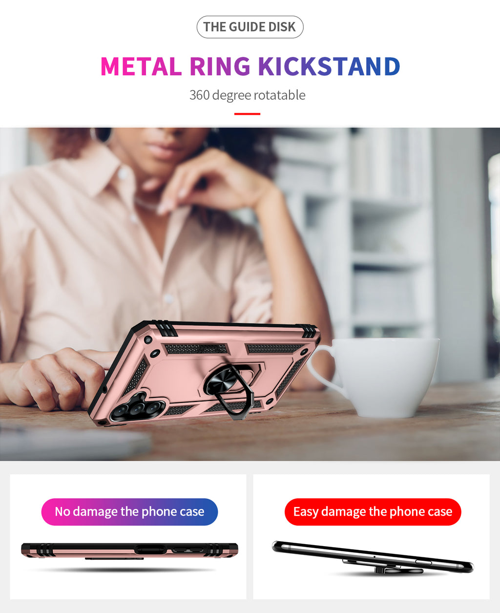 360 degree rotatable aluminum alloy ring kickstand on the Samsung Galaxy A13 5G Case allows for the optimal viewing position