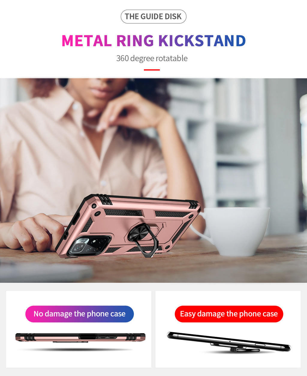 360 degree rotatable aluminum alloy ring kickstand on the Xiaomi Poco M4 Pro 5G Case allows for the optimal viewing position