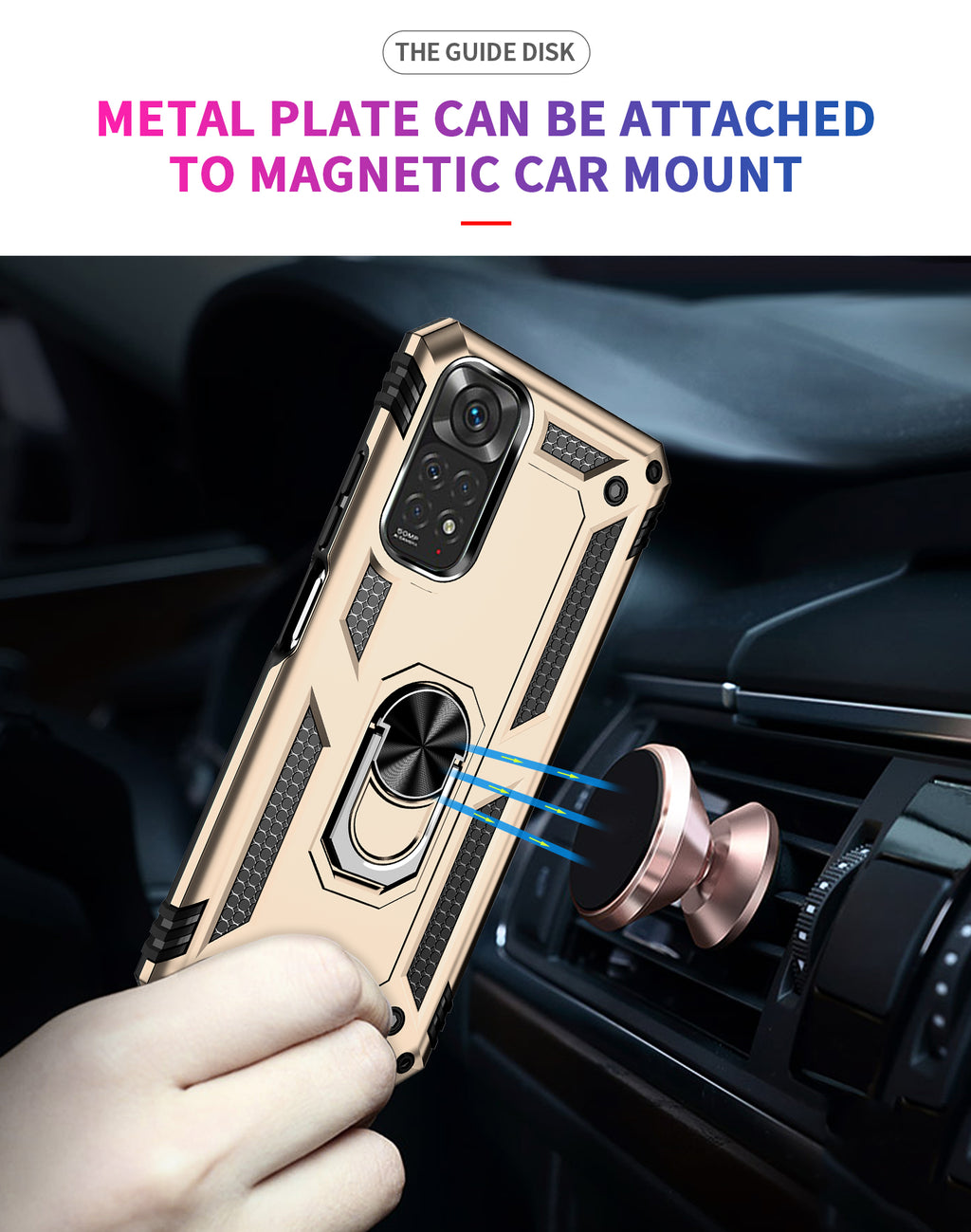 360 degree rotatable aluminum alloy ring kickstand on the Xiaomi Redmi Note 11 Case 4G allows for the optimal viewing position