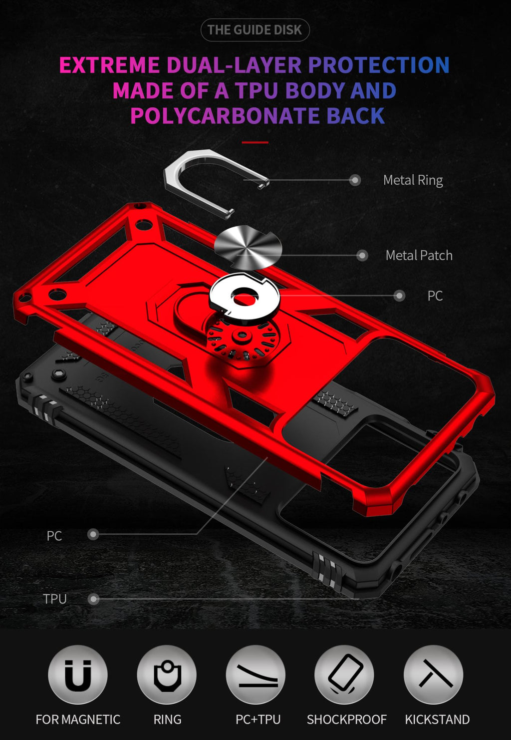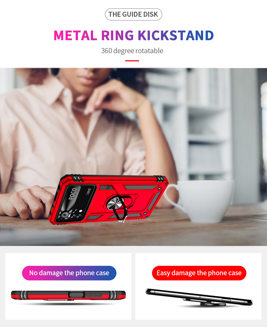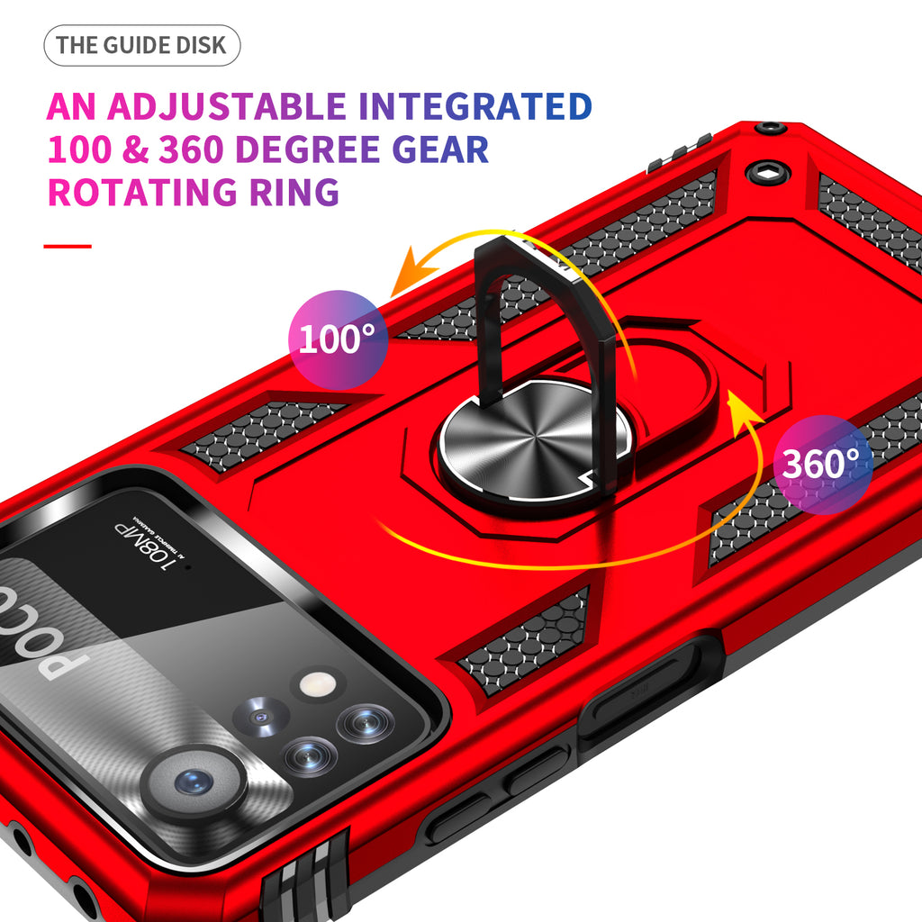 360 degree rotatable aluminum alloy ring kickstand on the Xiaomi Poco X4 Pro 5G Case allows for the optimal viewing position