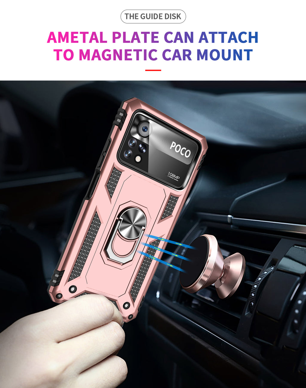 360 degree rotatable aluminum alloy ring kickstand on the Xiaomi Poco X4 Pro 5G Case allows for the optimal viewing position