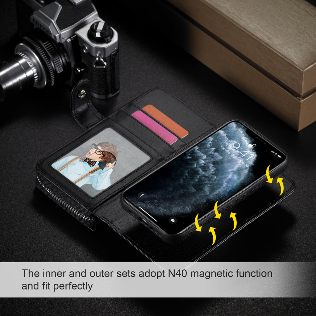 2 in 1 design with detachable slim TPU case and zipper wallet