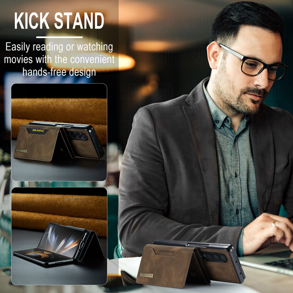 DG.MING Samsung Galaxy Z Fold 4 Case features a two-in-one design with a phone case and a mini wallet that can be attached together by strong magnetism.