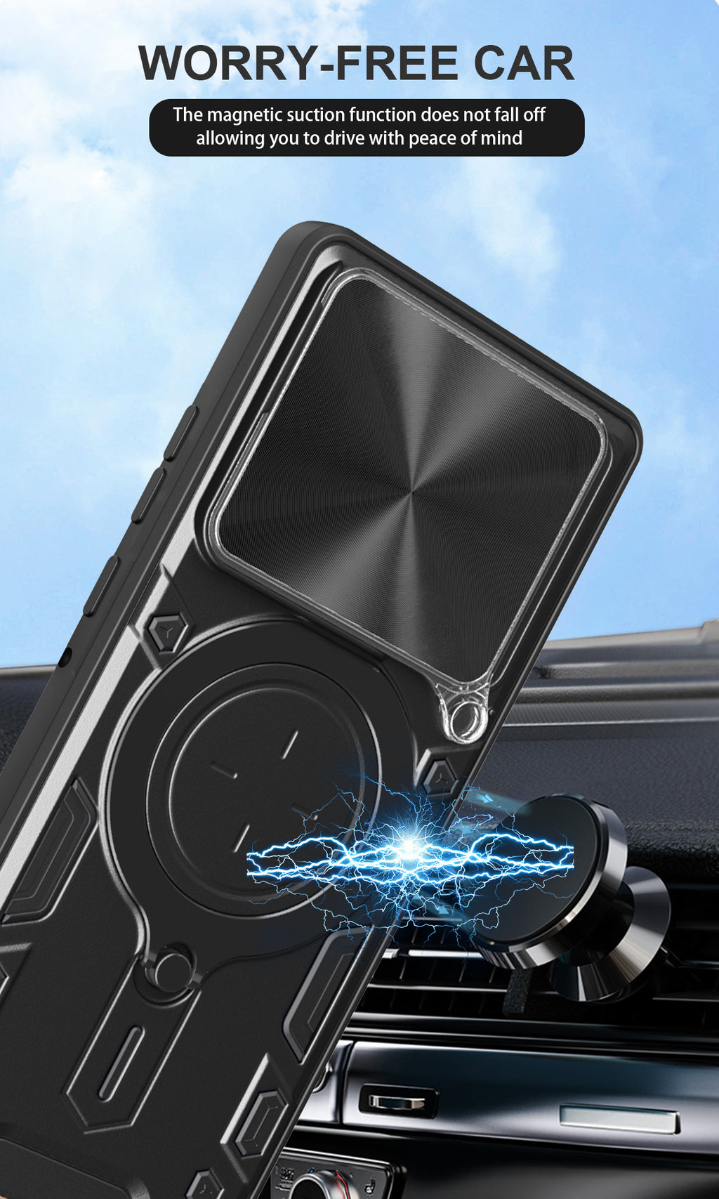 Add bold style and reliable protection to your phone with this Rugged Armor Ring Case, specially designed for the Motorola Moto Edge 60Pro. Featuring a CD-textured sliding camera cover, built-in metal ring stand, and shock-resistant design, this case is perfect for users who need function and toughness — all in one.