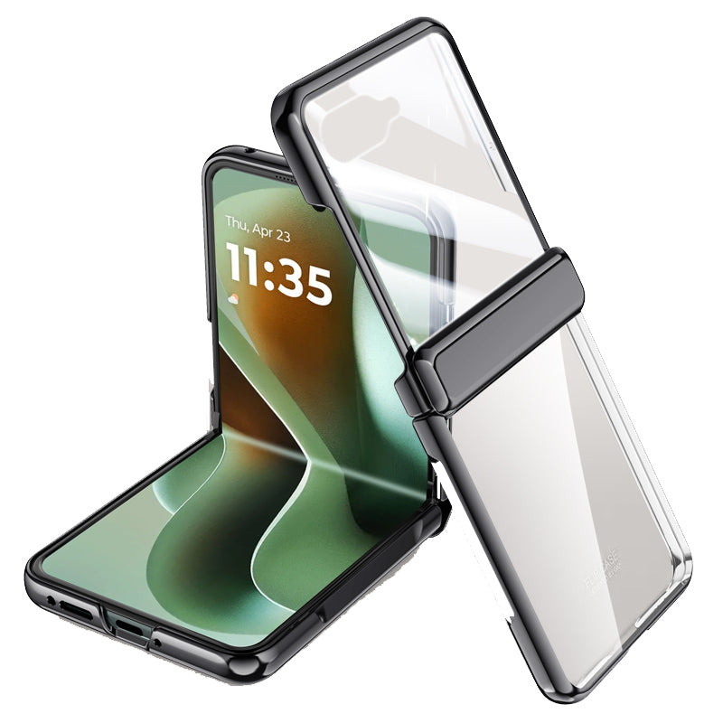 Upgrade your Motorola Razr 50 / Razr 60 with our Icebreaker Series Electroplated Hinge Case, a perfect blend of style and protection. This innovative case is made with a transparent back that lets your phone’s original finish shine through, while the built-in tempered glass screen protector offers full coverage and scratch resistance—no need for a separate screen film!