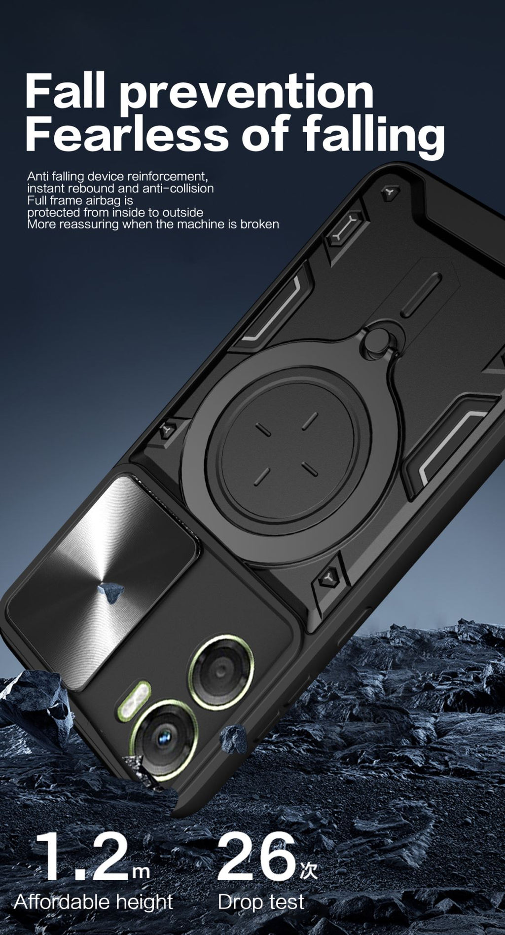 Add bold style and reliable protection to your phone with this Rugged Armor Ring Case, specially designed for the Motorola Moto G06 4G . Featuring a CD-textured sliding camera cover, built-in metal ring stand, and shock-resistant design, this case is perfect for users who need function and toughness — all in one.