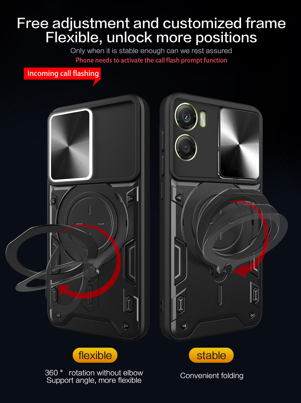 Flashing Effect – When calls or messages come in, the flash reflects through the lens cover ring