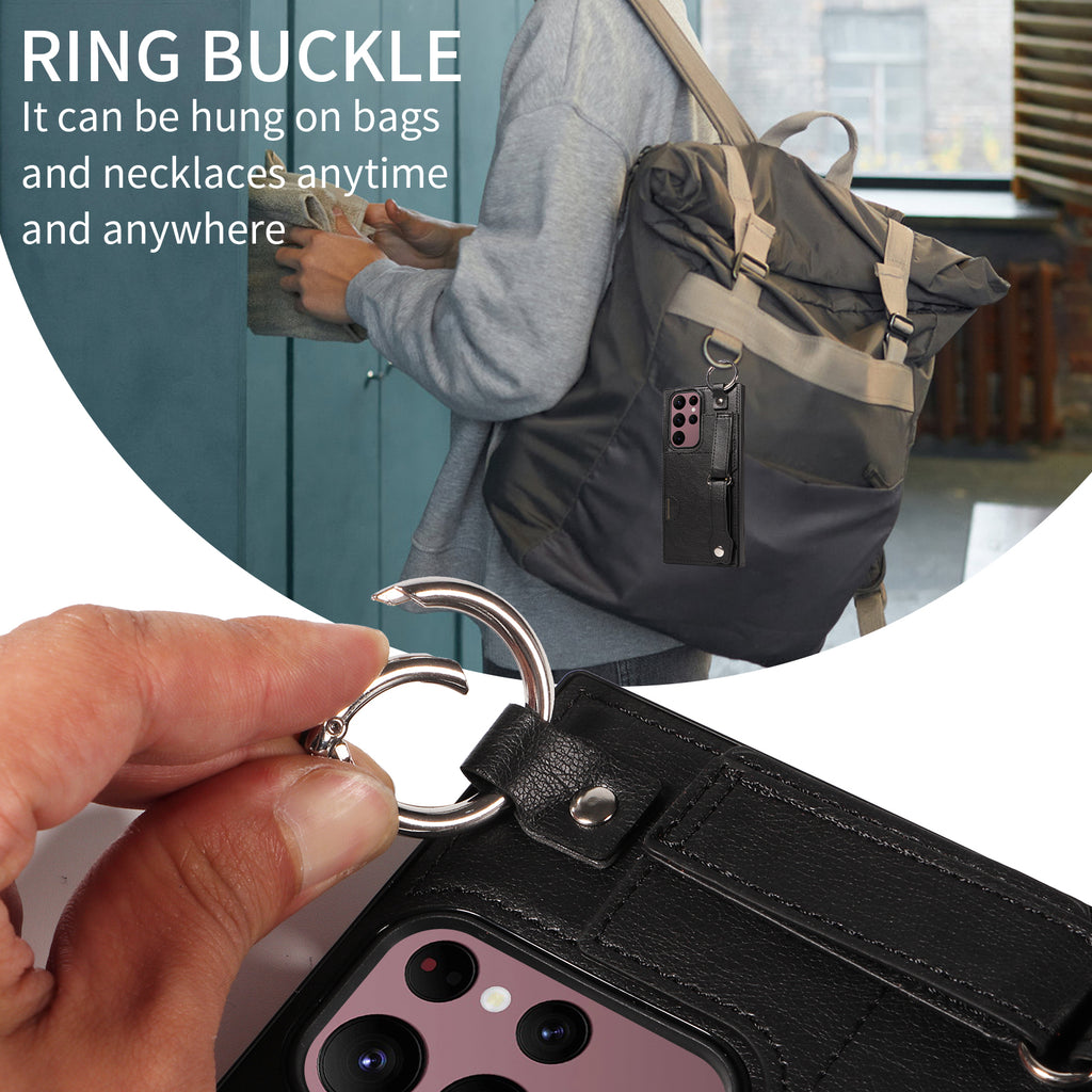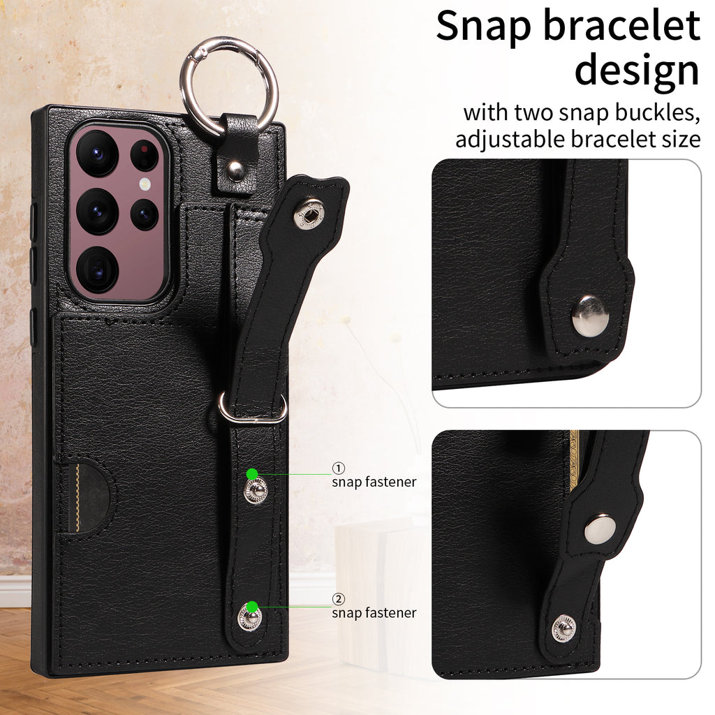 Quality PU Leather Single Card Samsung Galaxy S22 Ultra Case with Hand Strap