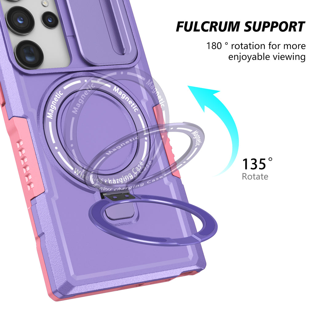 Quality MagSafe Compatible Magnetic Ring Heavy Duty Kickstand Samsung Galaxy S22 Ultra Case with Rear Camera Sliding Cover