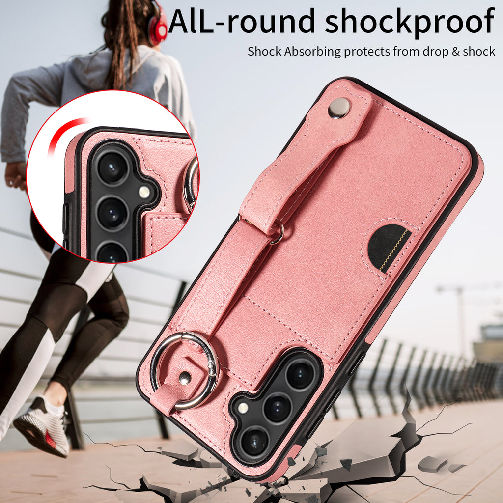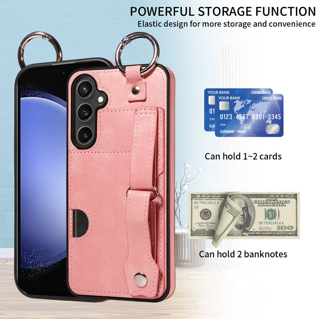 Quality PU Leather Single Card Samsung Galaxy S23 FE Case with Hand Strap