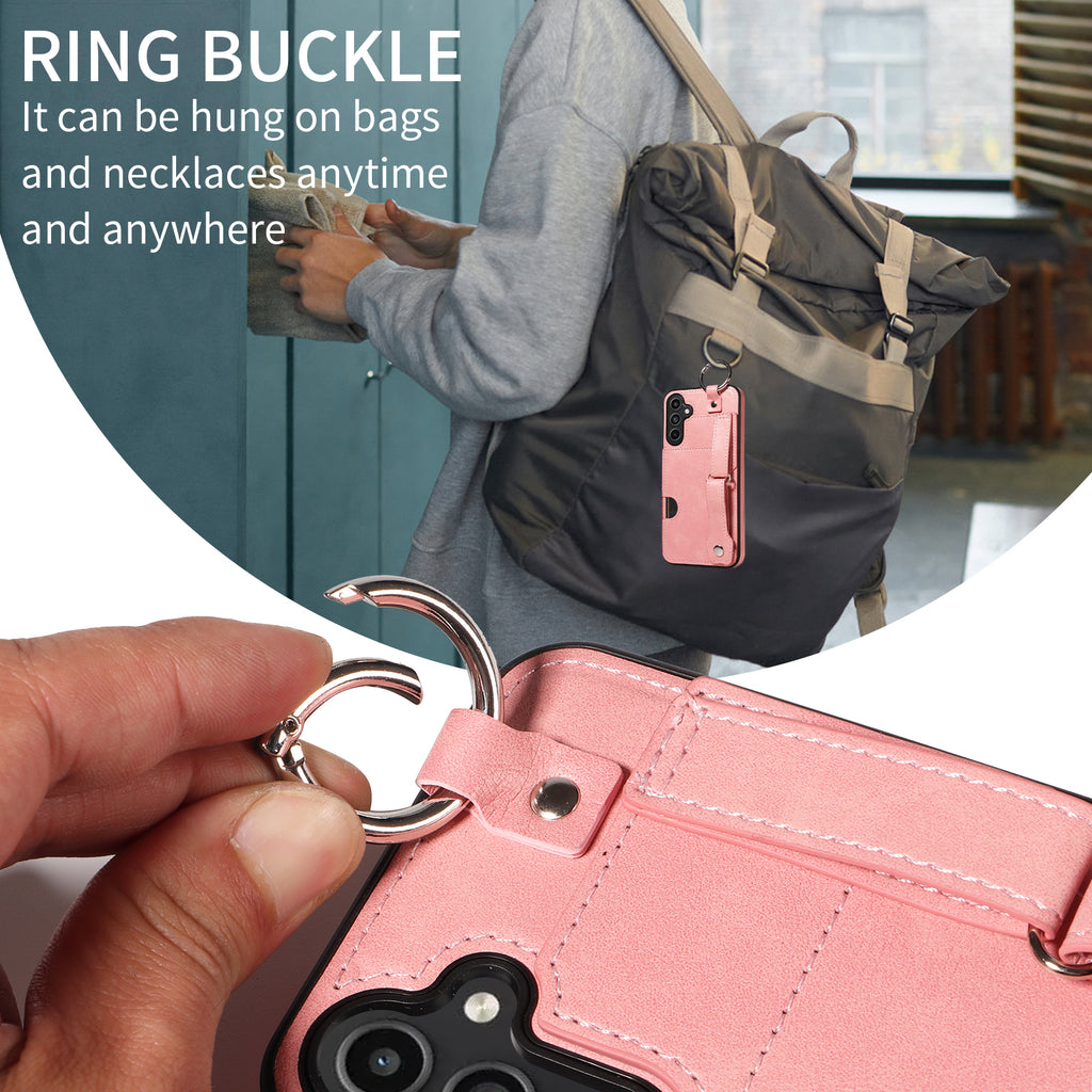 Quality PU Leather Single Card Samsung Galaxy A15 Case with Hand Strap