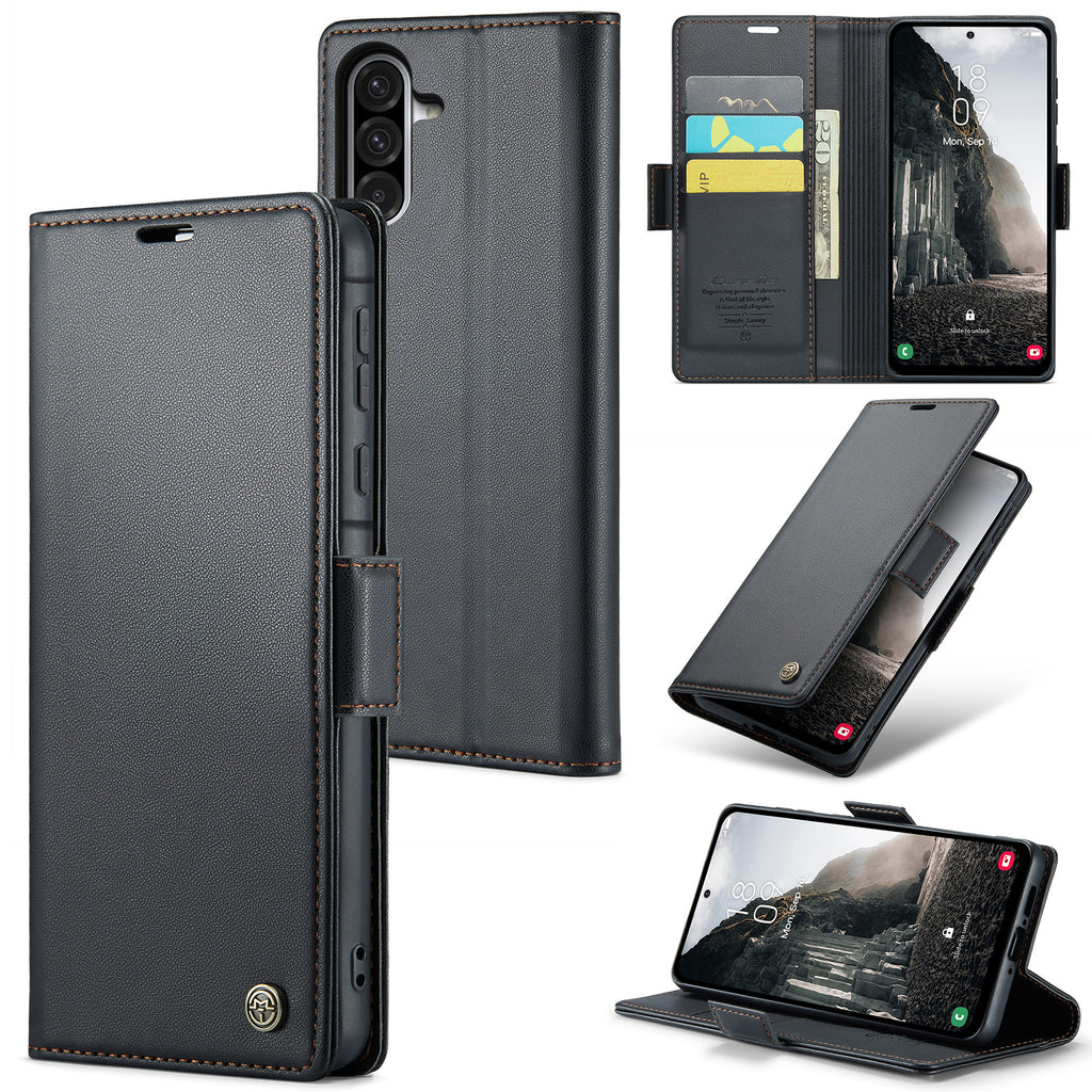 Viewing Stand Samsung Galaxy A56 Case, Full Body Protection Samsung Galaxy A56 Case, Card Slots Samsung Galaxy A56 Case, Cash Pocket Samsung Galaxy A56 Cover, Auto-securing Magnetic Tab Closure Samsung Galaxy A56 Cover, Drop Protection for Samsung Galaxy A56