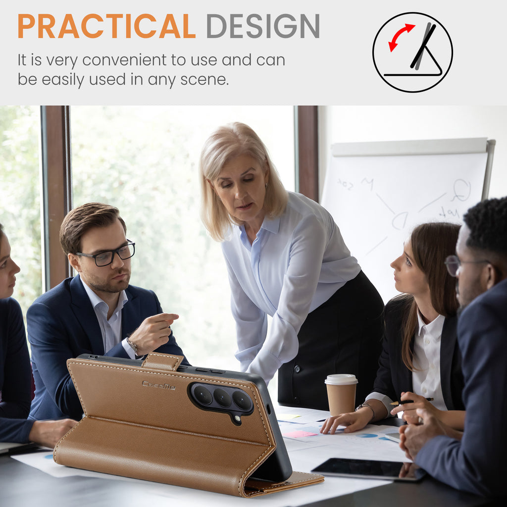 CaseMe Retro PU Leather Wallet Case for Samsung S26 Plus – RFID, Card Slots, Stand Function