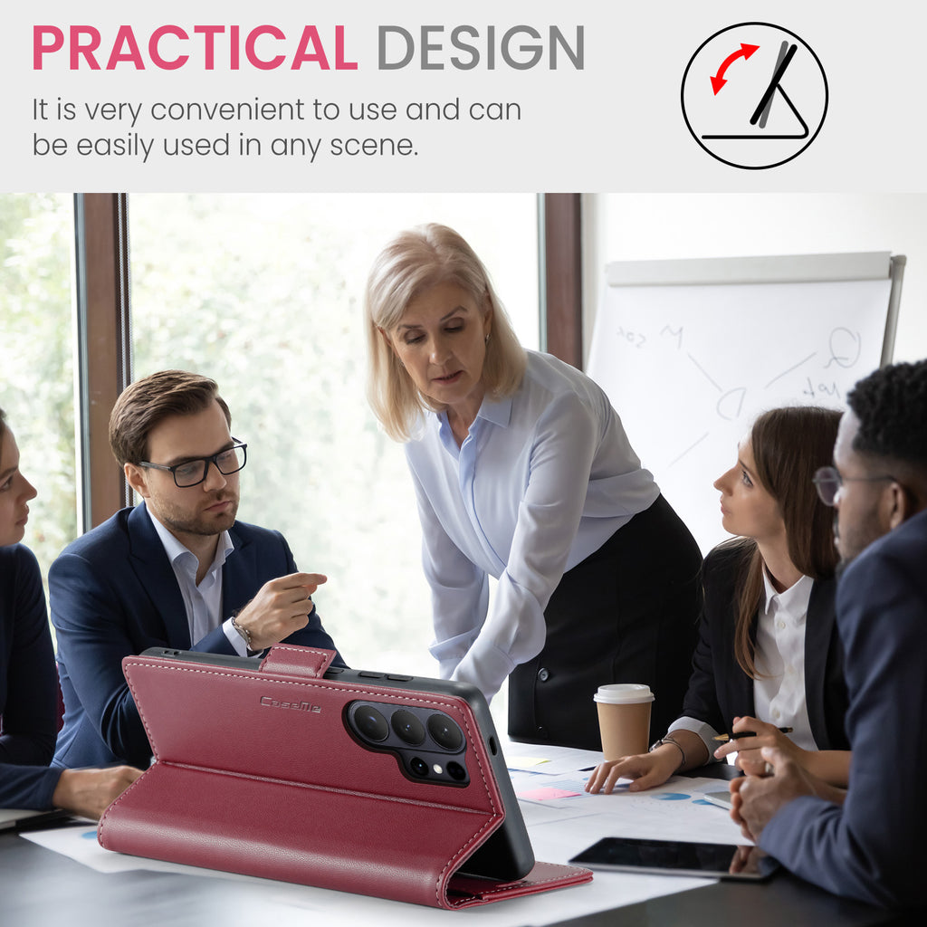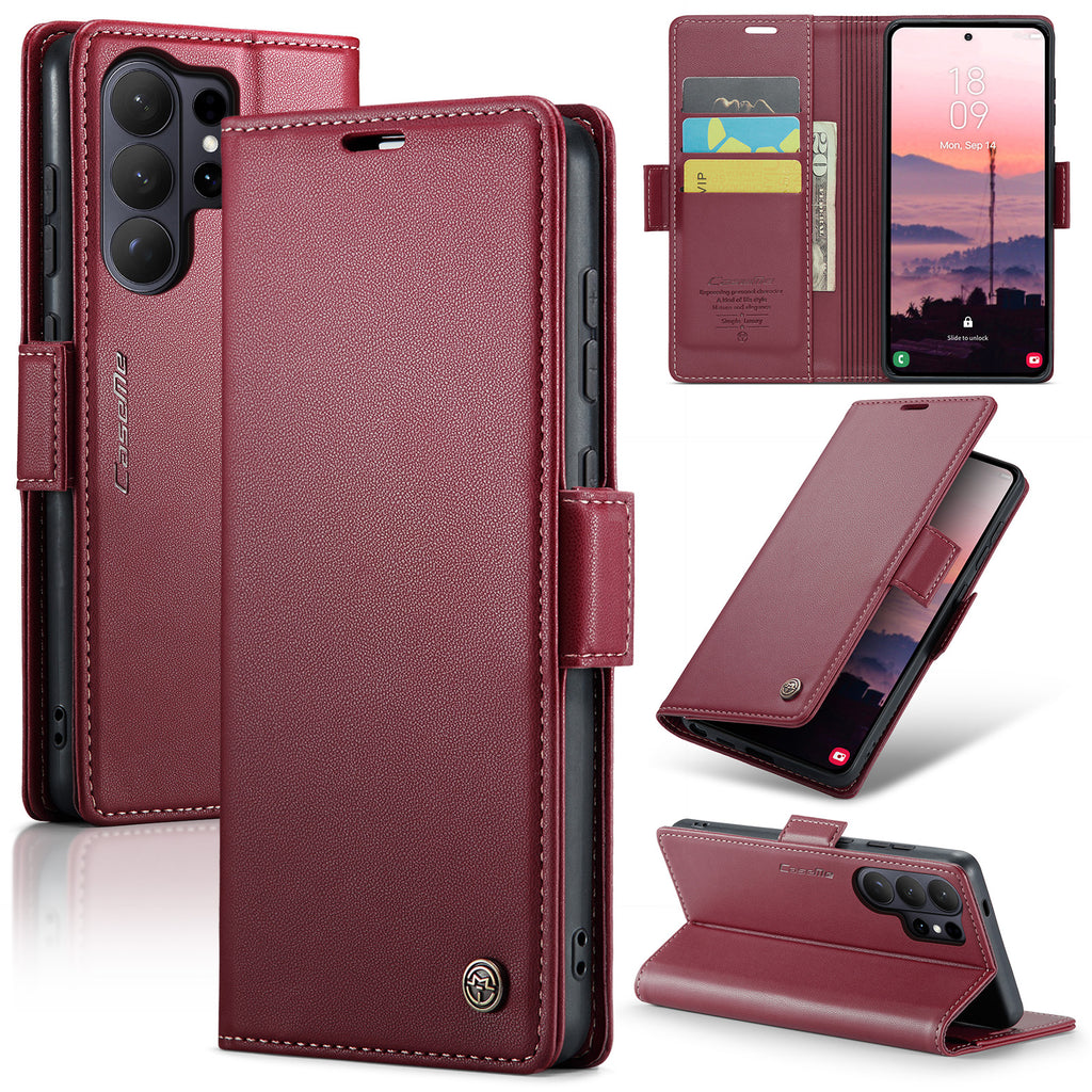 CaseMe Retro PU Leather Wallet Case for Samsung S26 Ultra – RFID, Card Slots, Stand Function