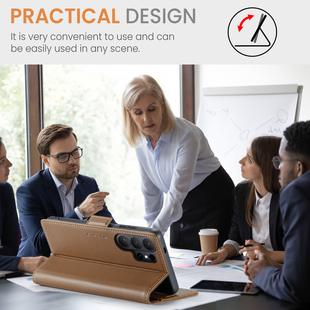 CaseMe Retro PU Leather Wallet Case for Samsung S26 Ultra – RFID, Card Slots, Stand Function