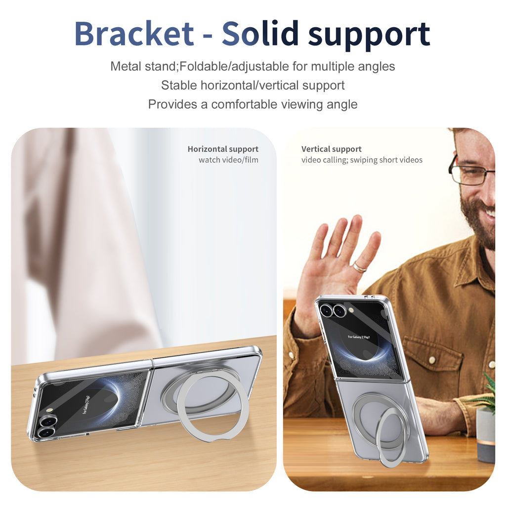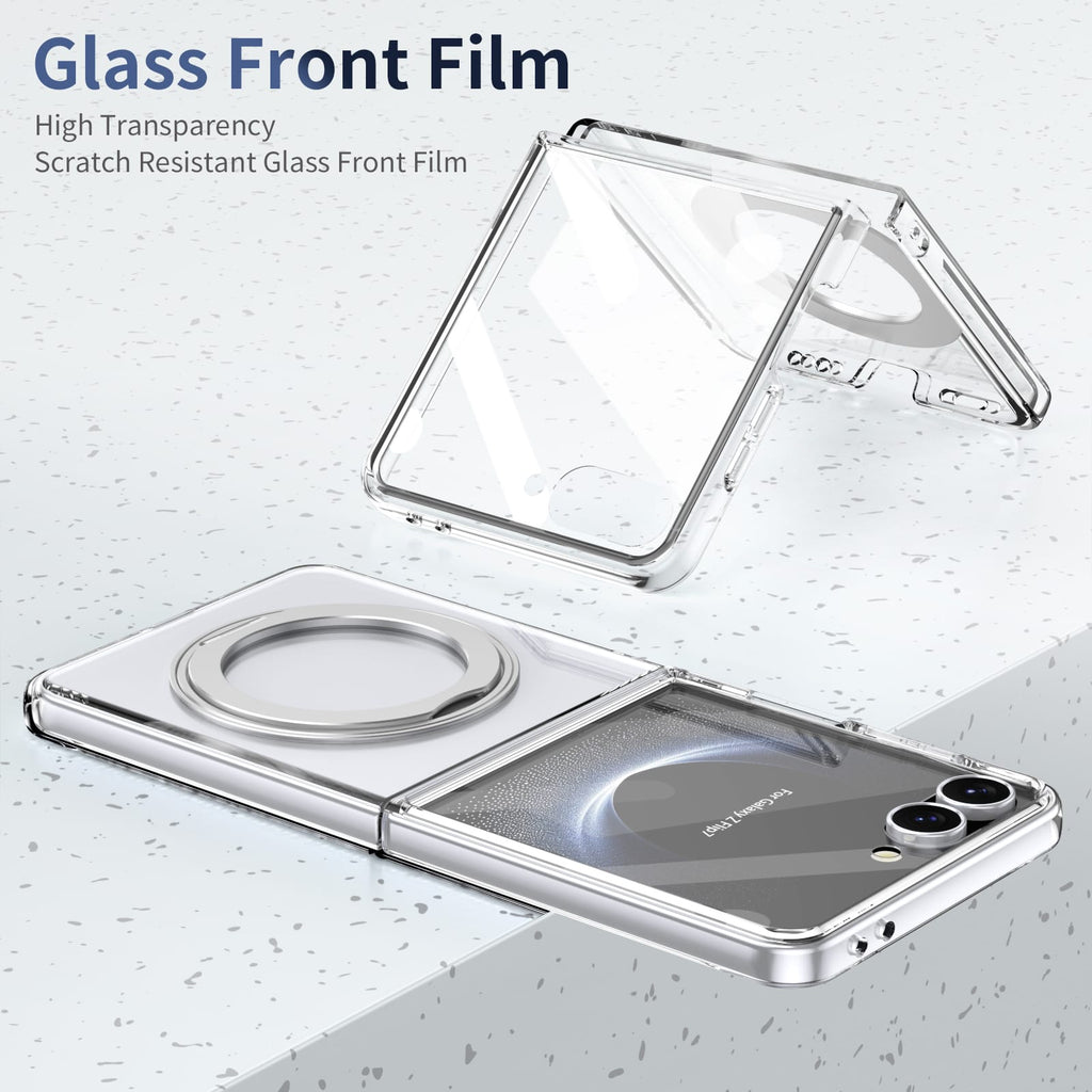 Brand New Galaxy Z Flip 7 Clear MagSafe Case with Built-in Tempered Glass, 360° Rotating Stand and Wireless Charging Support