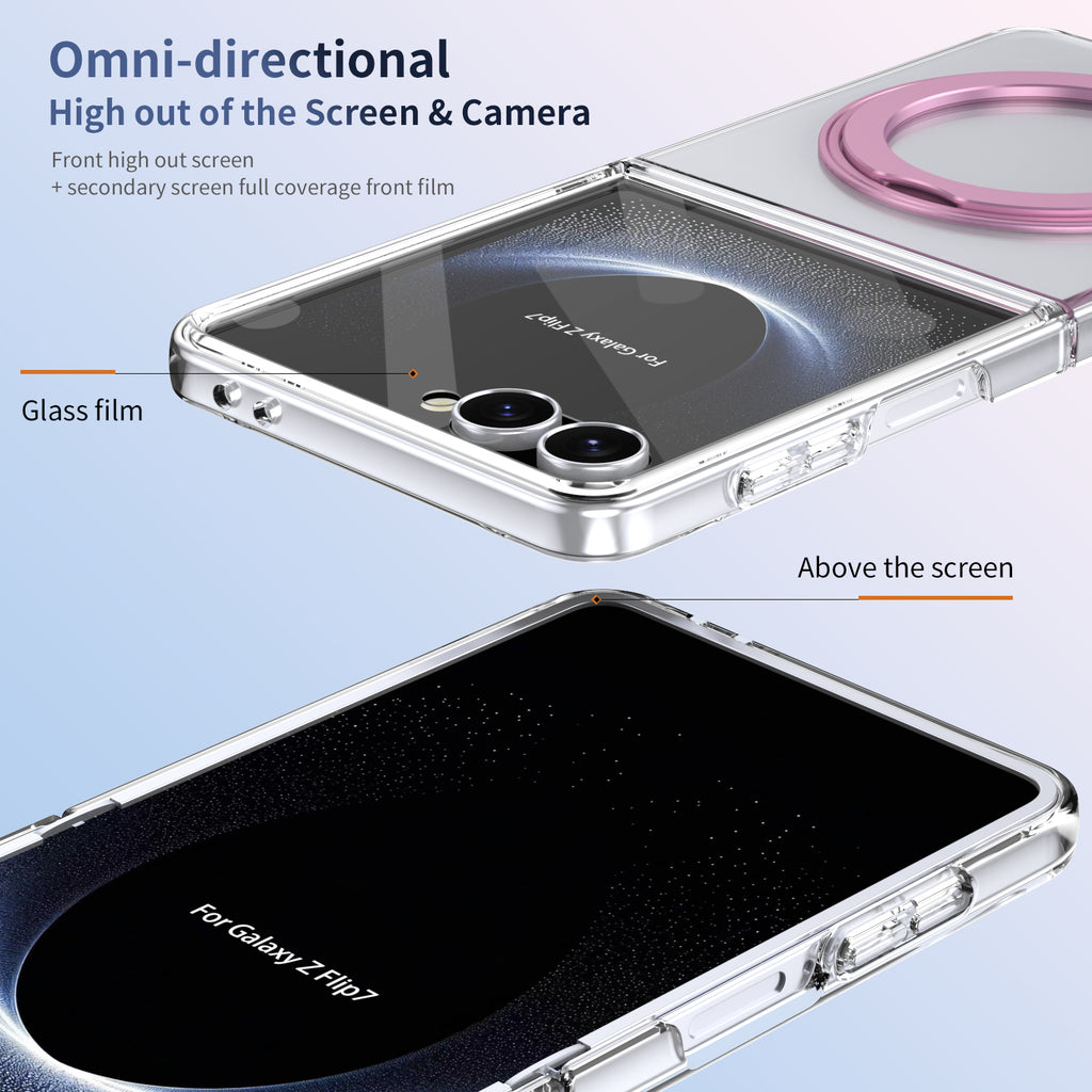 Brand New Galaxy Z Flip 7 Clear MagSafe Case with Built-in Tempered Glass, 360° Rotating Stand and Wireless Charging Support