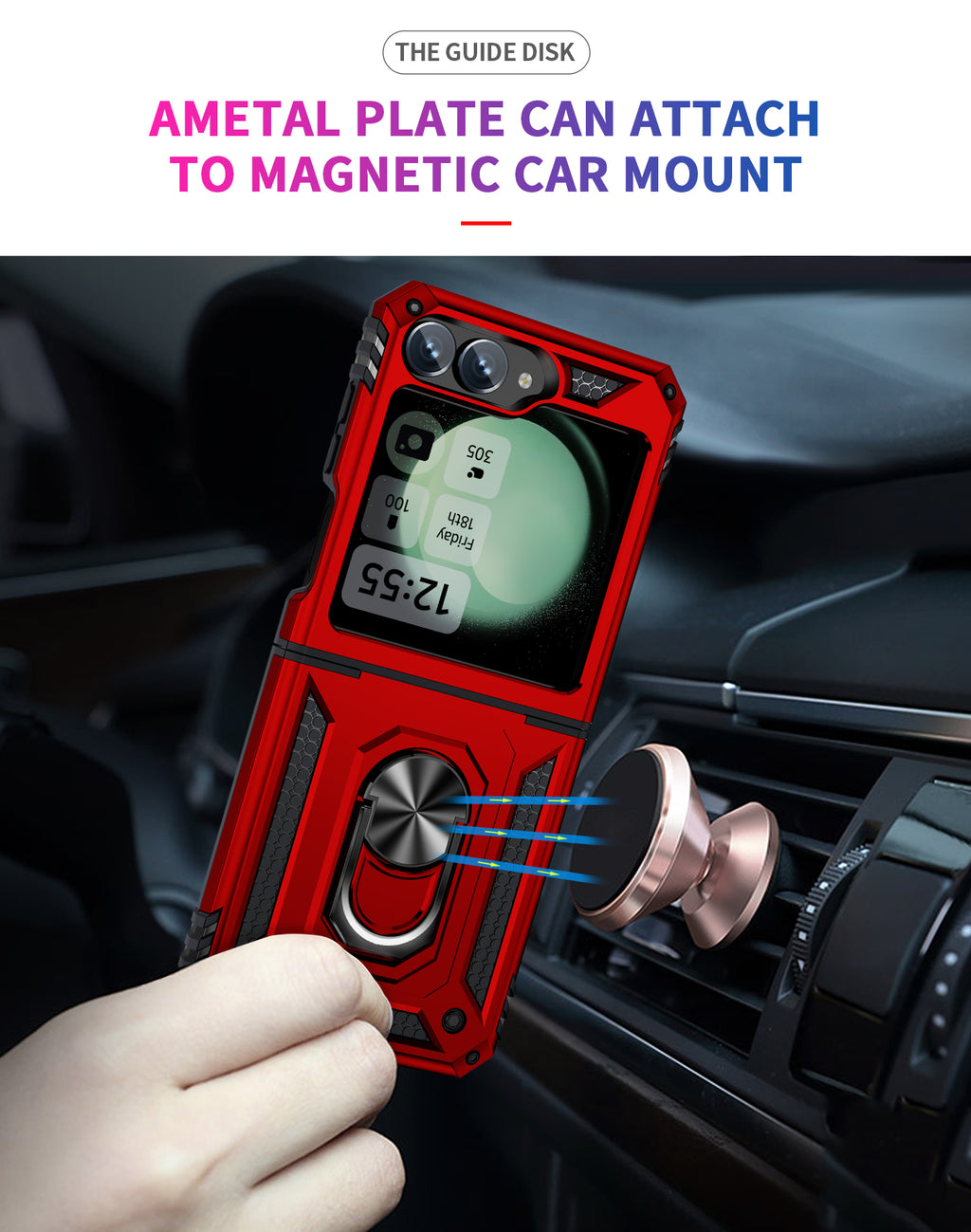 Built-in metal patch is compatible with magnetic car holder
