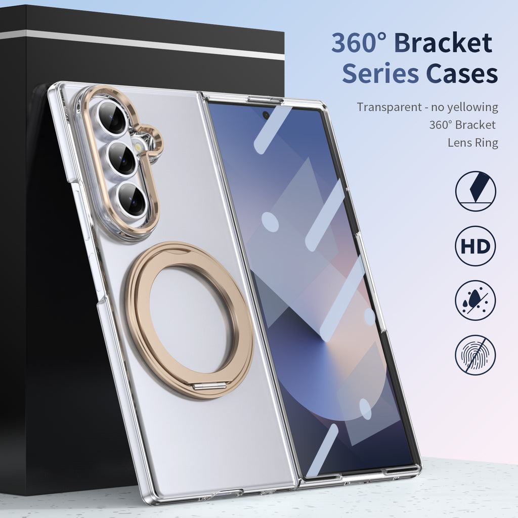 Brand New Galaxy Z Fold 7 Clear MagSafe Case with Built-in Tempered Glass, 360° Rotating Stand, Metal Camera Ring, and Wireless Charging Support