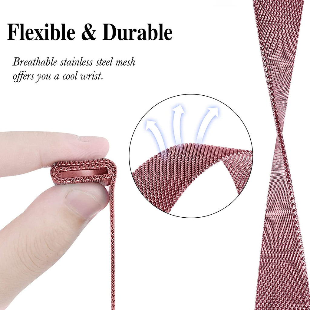 Quality Fitbit Versa 4 Strap Stainless Steel Mesh Milanese Loop Band with Adjustable Magnetic Closure