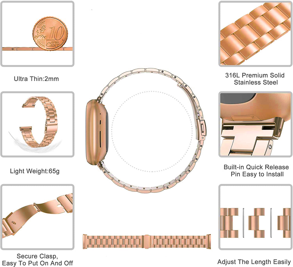 Up to 10 links can be removed, easy to adjust the Fitbit Versa 4 Strap length