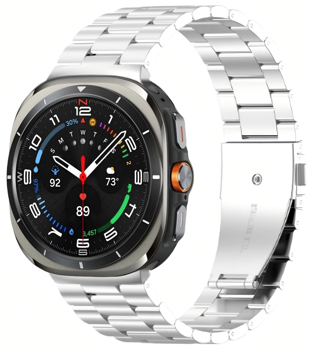 Crafted for elegance and precision, this stainless-steel link bracelet transforms your Samsung Galaxy Watch 8 into a timeless accessory.