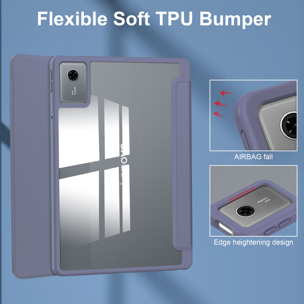Protect your Lenovo Idea Tab 11 with the new Smart Acrylic Tri-Fold Case — a premium design that combines a clear Acrylic back panel with a flexible TPU bumper and magnetic PU leather cover. It features a built-in stylus holder and foldable stand for viewing and typing modes.