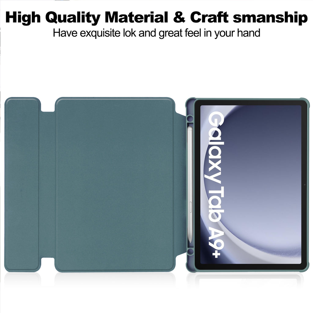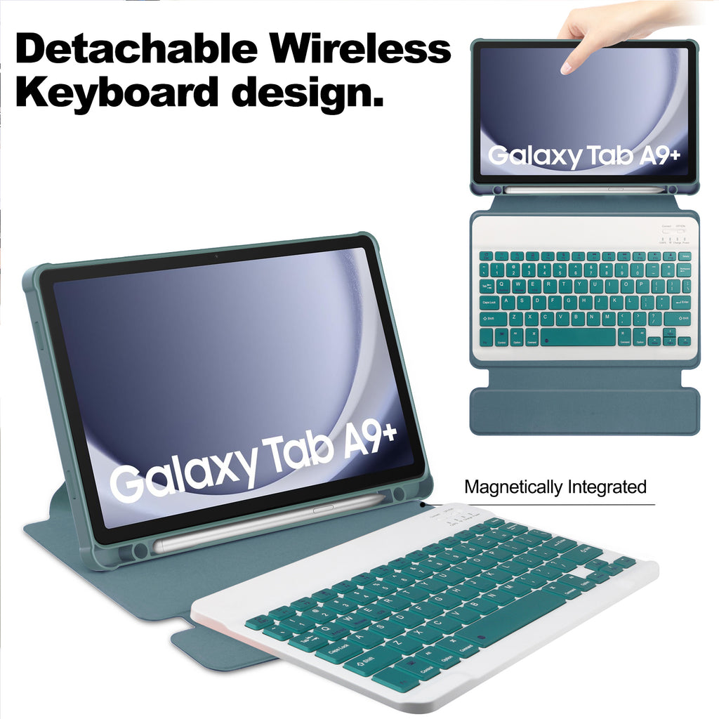 This 360° Rotating Magnetic Keyboard Case is designed specifically for Samsung Galaxy Tab A9+ and A11+, combining a premium rotating PU leather case with a detachable ultra-slim Bluetooth keyboard.