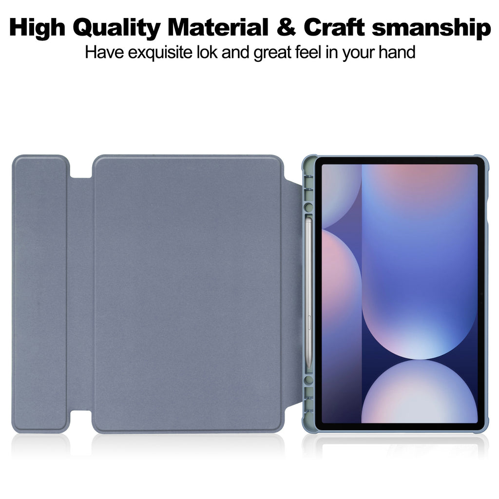 The metal-backed keyboard magnetically attaches to the case for a stable, laptop-style typing experience — and detaches instantly when you want to use your tablet freely.