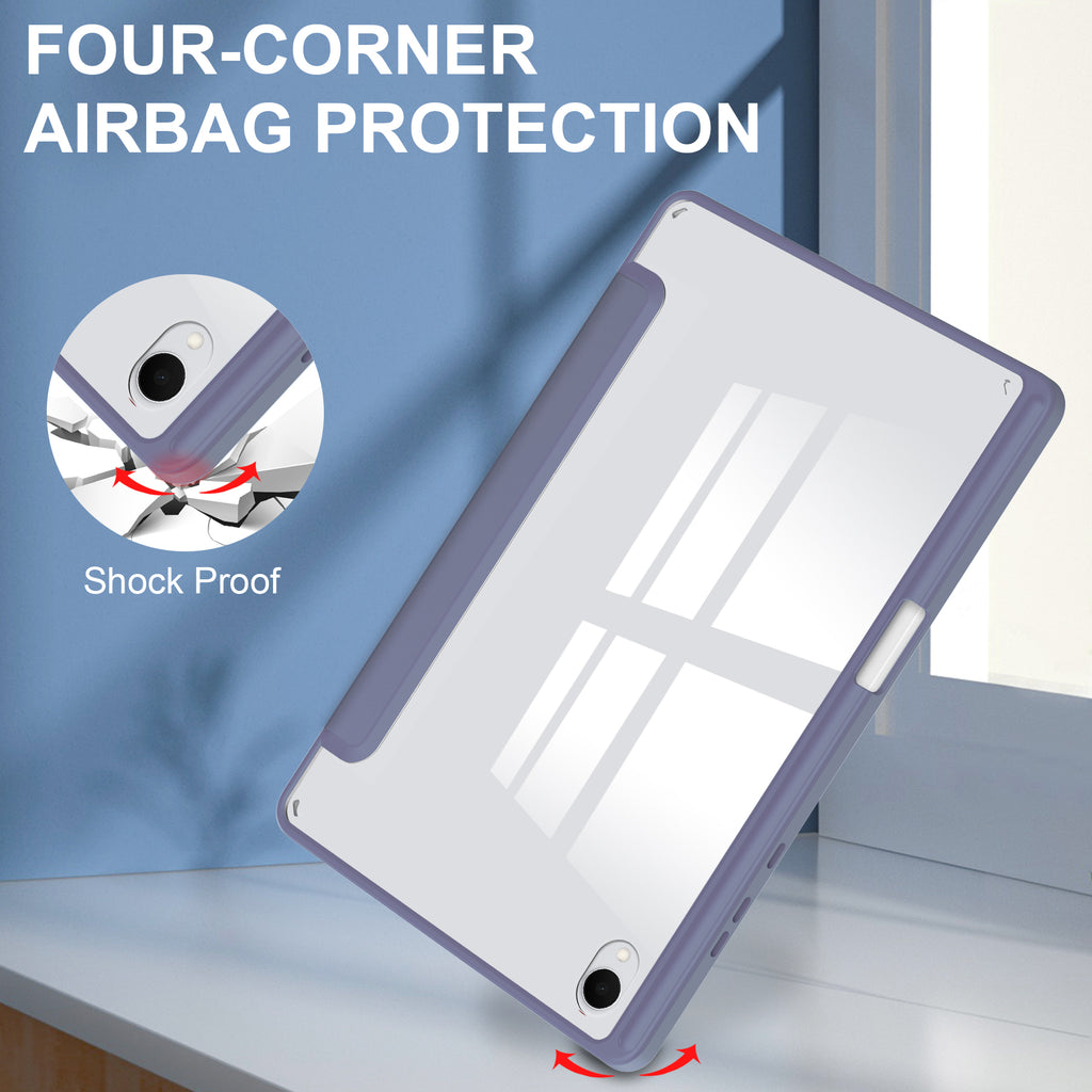 Keep your Samsung Galaxy Tab S11 safe and stylish with this Smart Acrylic Tri-Fold Case featuring a transparent back panel and soft TPU bumpers for shock protection. Comes with a dedicated S Pen slot and auto wake / sleep magnetic cover for daily convenience.